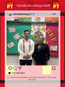 La Concejala Zenaida Ortega Cortés refrenda que su trabajo continuará orientado a fortalecer la seguridad, la inclusión, la participación ciudadana y el bienestar colectivo en Gustavo A. Madero, con una gestión cercana al territorio y con profundo compromiso social. Desde el Partido del Trabajo, la Concejala Zenaida Ortega Cortés sostiene que la transformación se construye desde abajo, con organización, conciencia y lucha permanente, colocando siempre al pueblo en el centro de las decisiones públicas. Con convicción petista, su labor seguirá guiada por los principios de justicia social, soberanía, solidaridad y defensa de los derechos del pueblo trabajador, porque solo así se avanza hacia una alcaldía más justa, digna y con futuro para todas y todos.