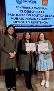 Asimismo, asistió a espacios de reflexión como la conferencia magistral sobre el derecho a la participación política de las mujeres indígenas, reconociendo que este derecho humano fundamental es indispensable para construir una democracia incluyente, con igualdad y respeto a la diversidad cultural.