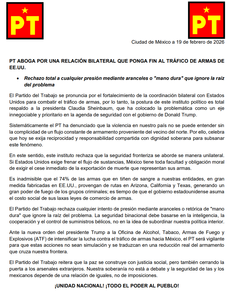 Ciudad de México a 19 de febrero de 2026 • Rechazo total a cualquier presión mediante aranceles o “mano dura” que ignore la raíz