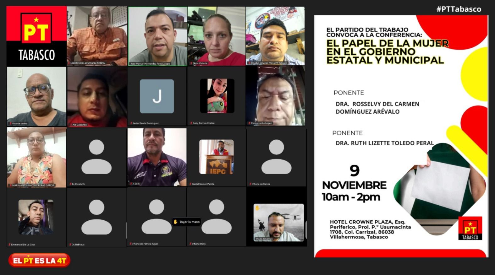 Villahermosa, Tabasco Por la redacción En un ambiente de unidad, reflexión y formación política, el 16 de noviembre delegadas, delegados y liderazgos petistas de